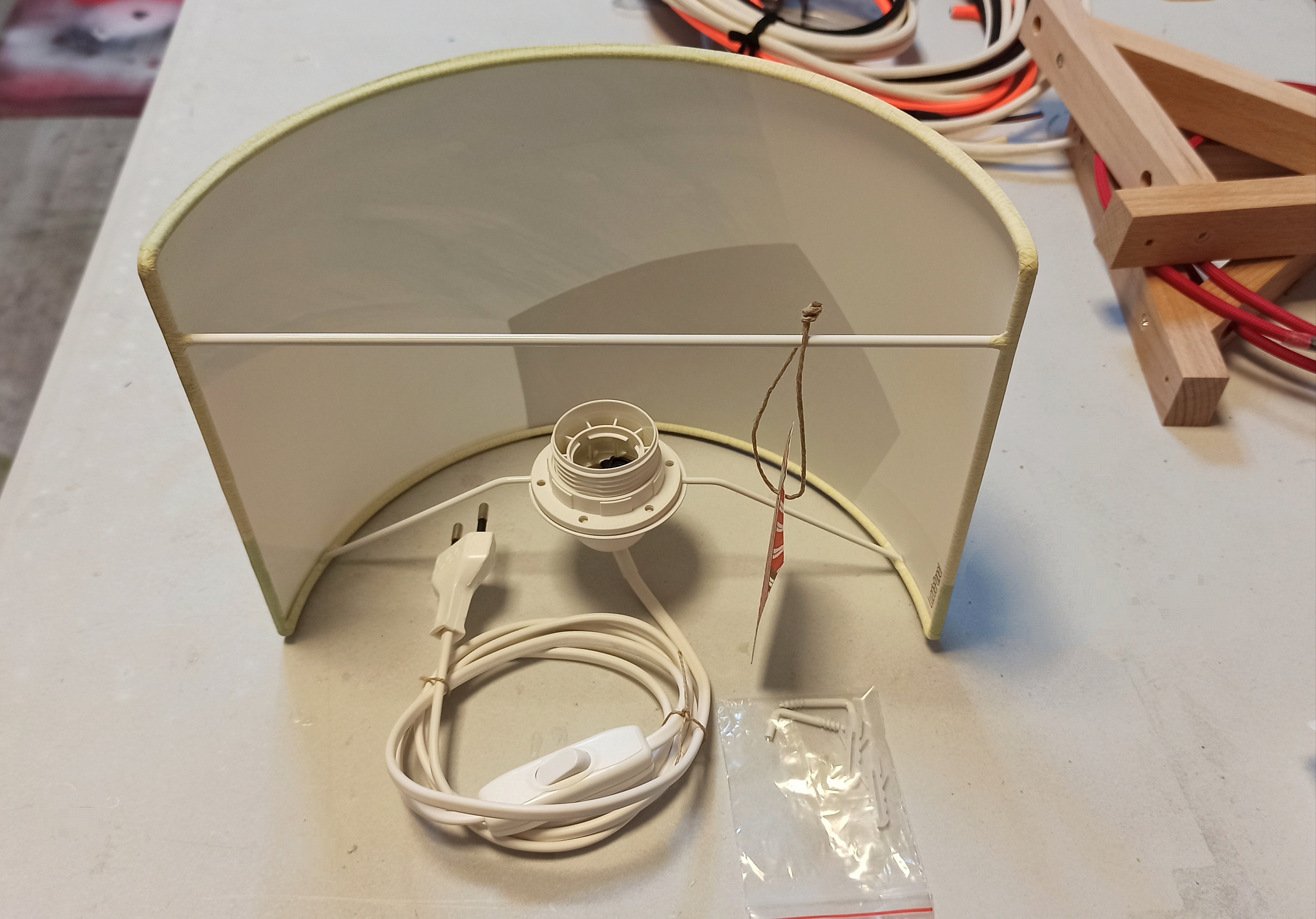 This lamp is a wall lamp, suitable for electrical outlets on your house wall. Anyway we send it with a cord with switch, socket and plug (1'5m / 41'34 inches) for example to put it on a shelf.